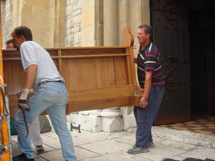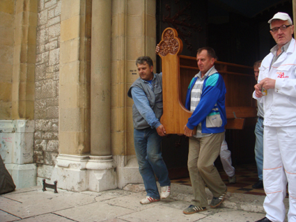 Odvezene su klupe s desne strane katedrale i uskladištene u kripti crkve Novo Sarajevo. Mijo, stolar iz Odžaka je pripremio ispovjedaonice za demontiranje ( kod Stadlerova groba i groba nadbiskupa Jozinovića). One će također biti premještene u kriptu crkve u Novo Sarajevo. Kanoničke klupe koje su stajale uza zidove u prezbiteriju su pomaknute od zidove prema sredini kako bi se moglo prići nesmetano zidovima i zaštićene su folijom. To je sve urađeno danas do 15 sati.